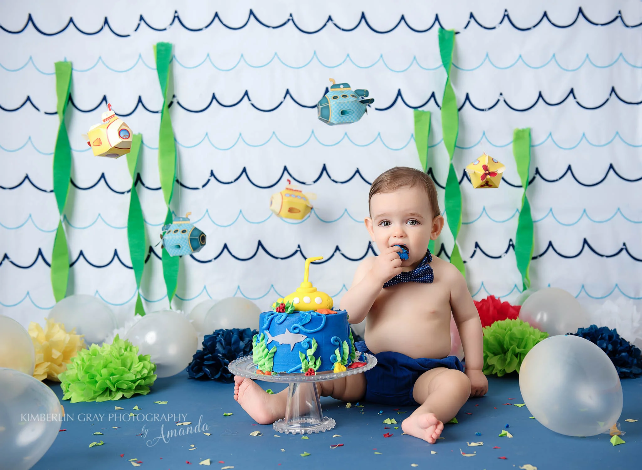 One of our most popular themes for first birthday cake smashes is “nautical”. Sometimes, it’s more beachy, sometimes more in the theme of the Navy, sometimes anchors and ship wheels! Our goal is to create something unique and different for each baby that comes into our studio – we talk a lot in our pre-session consultation about style to be sure that the theme matches the color scheme desired. But putting all the elements together is so much fun! It takes a lot of time and planning, but the results are always worth it!